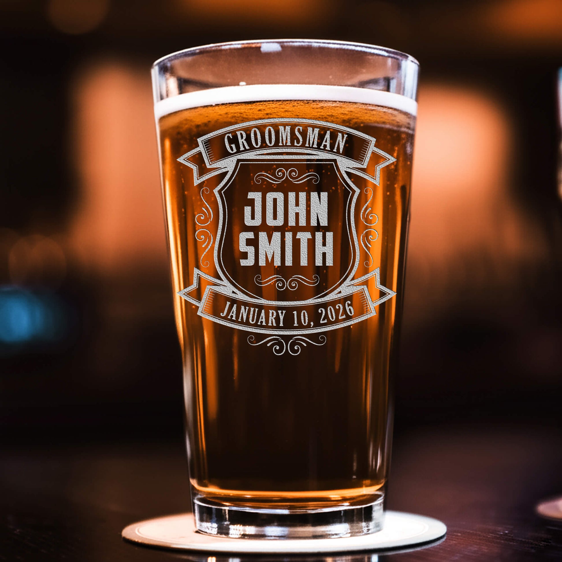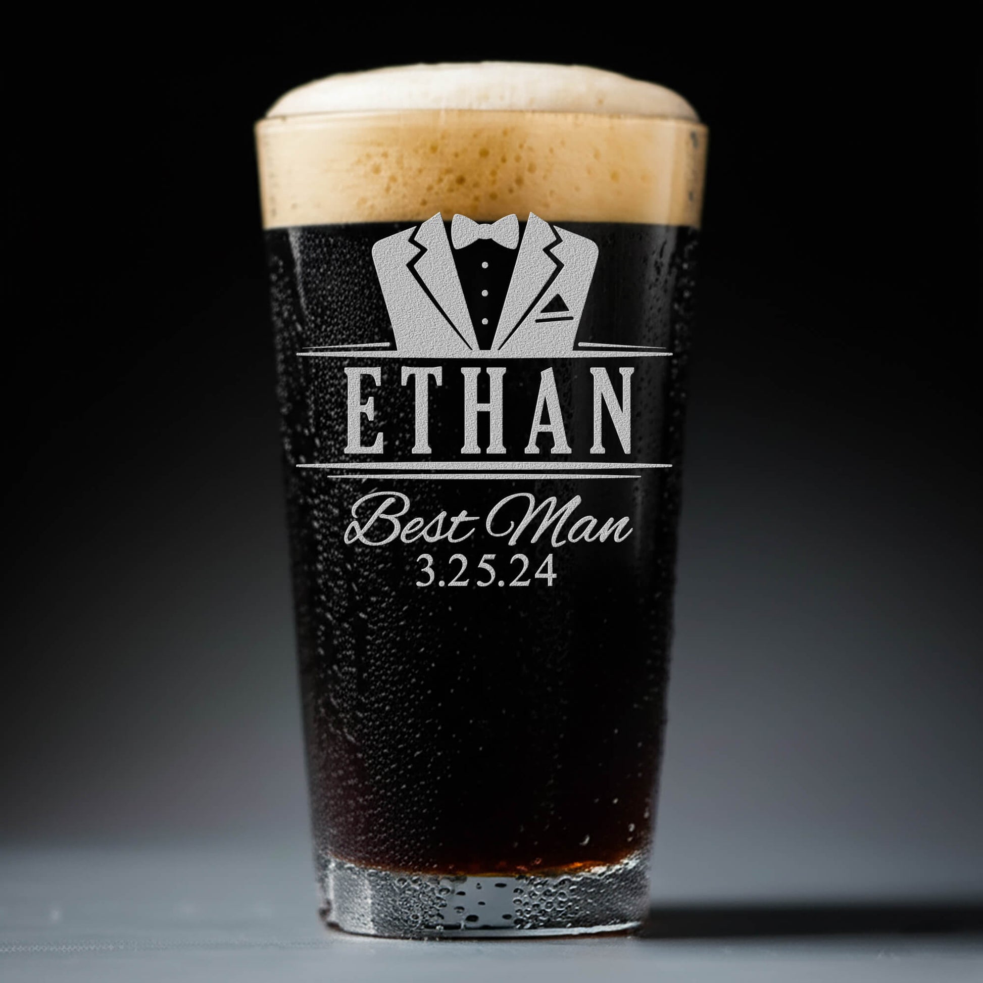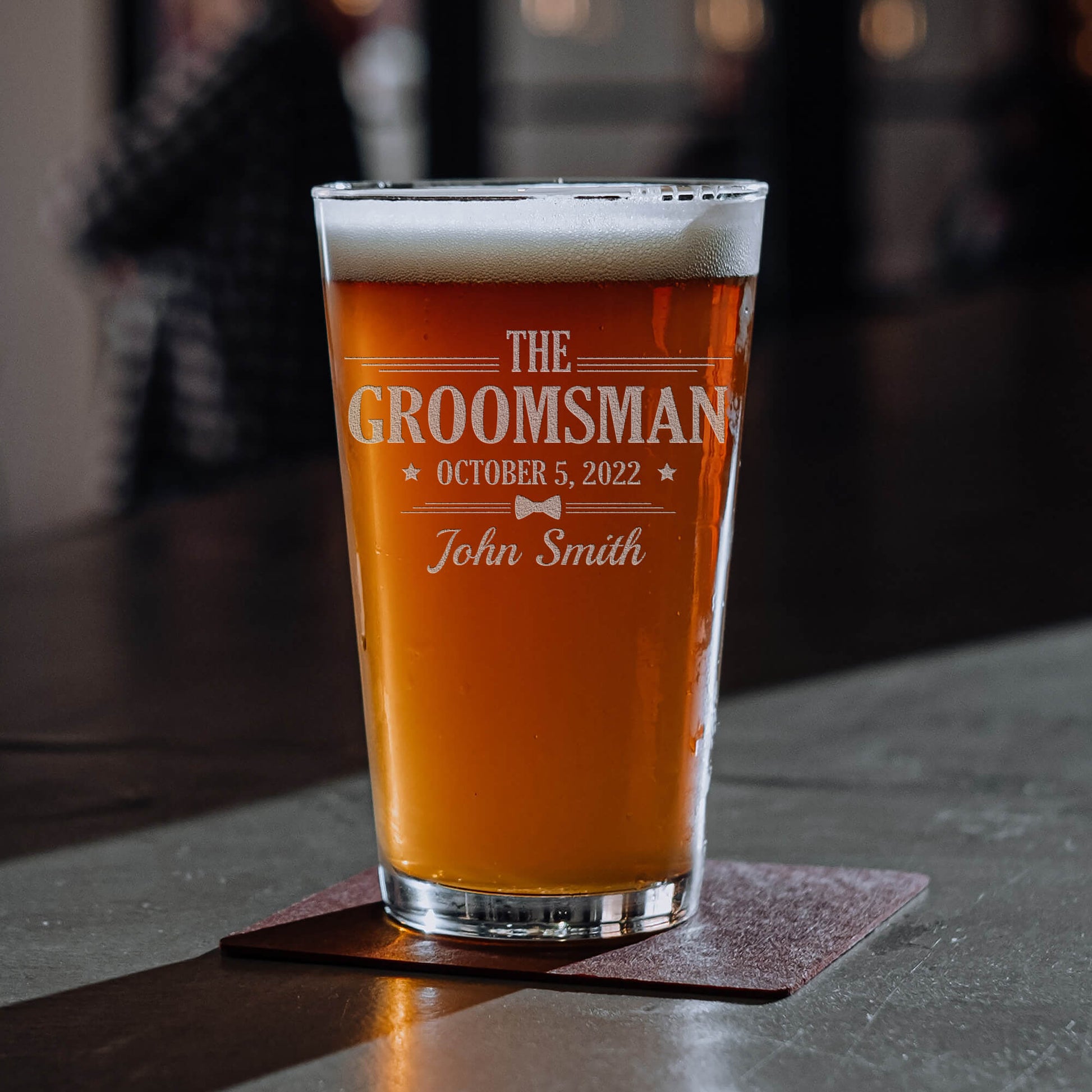 Custom Bachelor Party Beer Glass – Engraved Pint Glass with Name & Date, Personalized Groomsmen Gift, Bachelor Party Favor