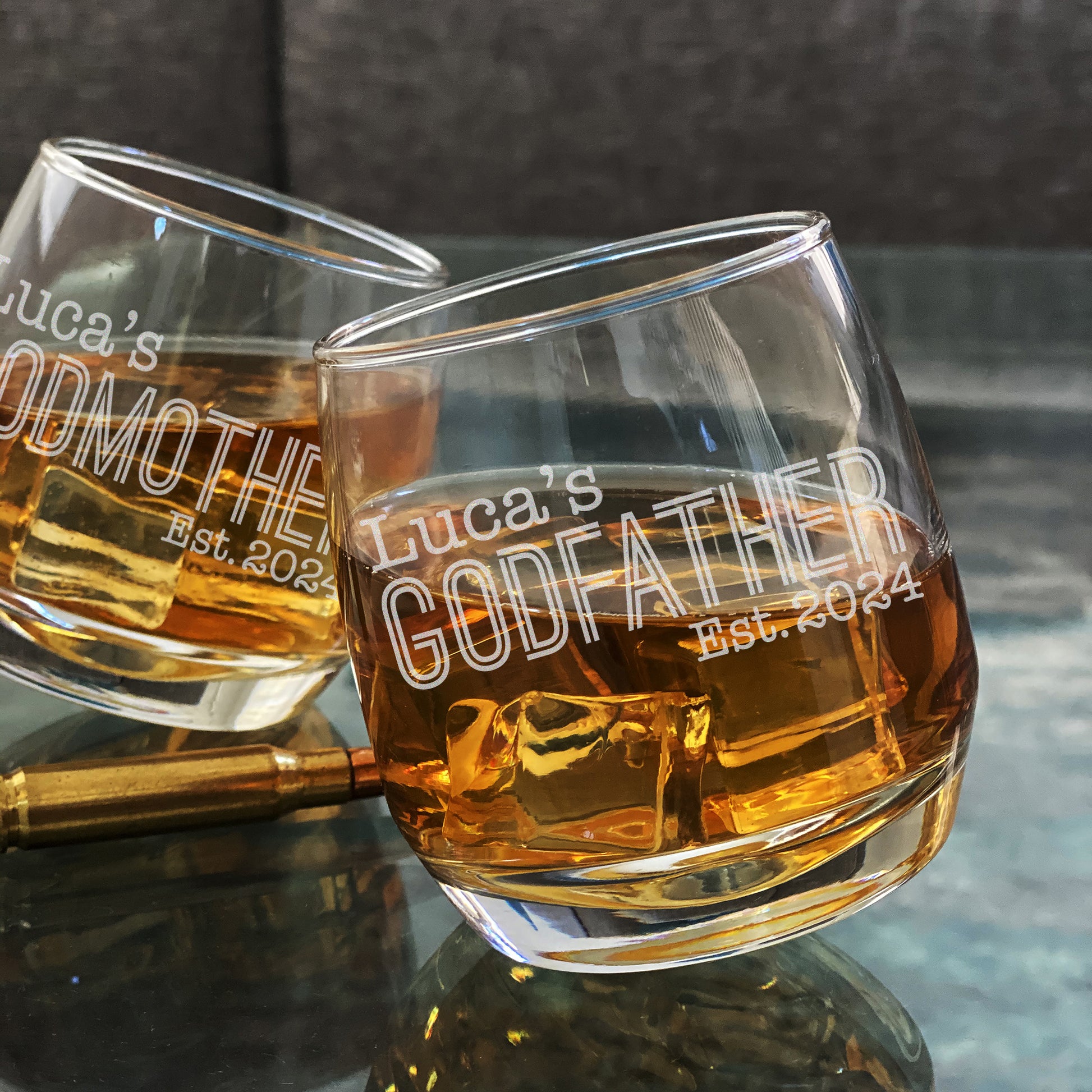 Make your godparent proposal unforgettable with our Custom Godfather Whiskey Glass. This stunning engraved rocking rocks glass is the perfect keepsake to honor your chosen godfather or godmother. Expertly crafted with precision, this unique whiskey glass features a smooth, rocking base that adds an extra touch of charm and elegance.