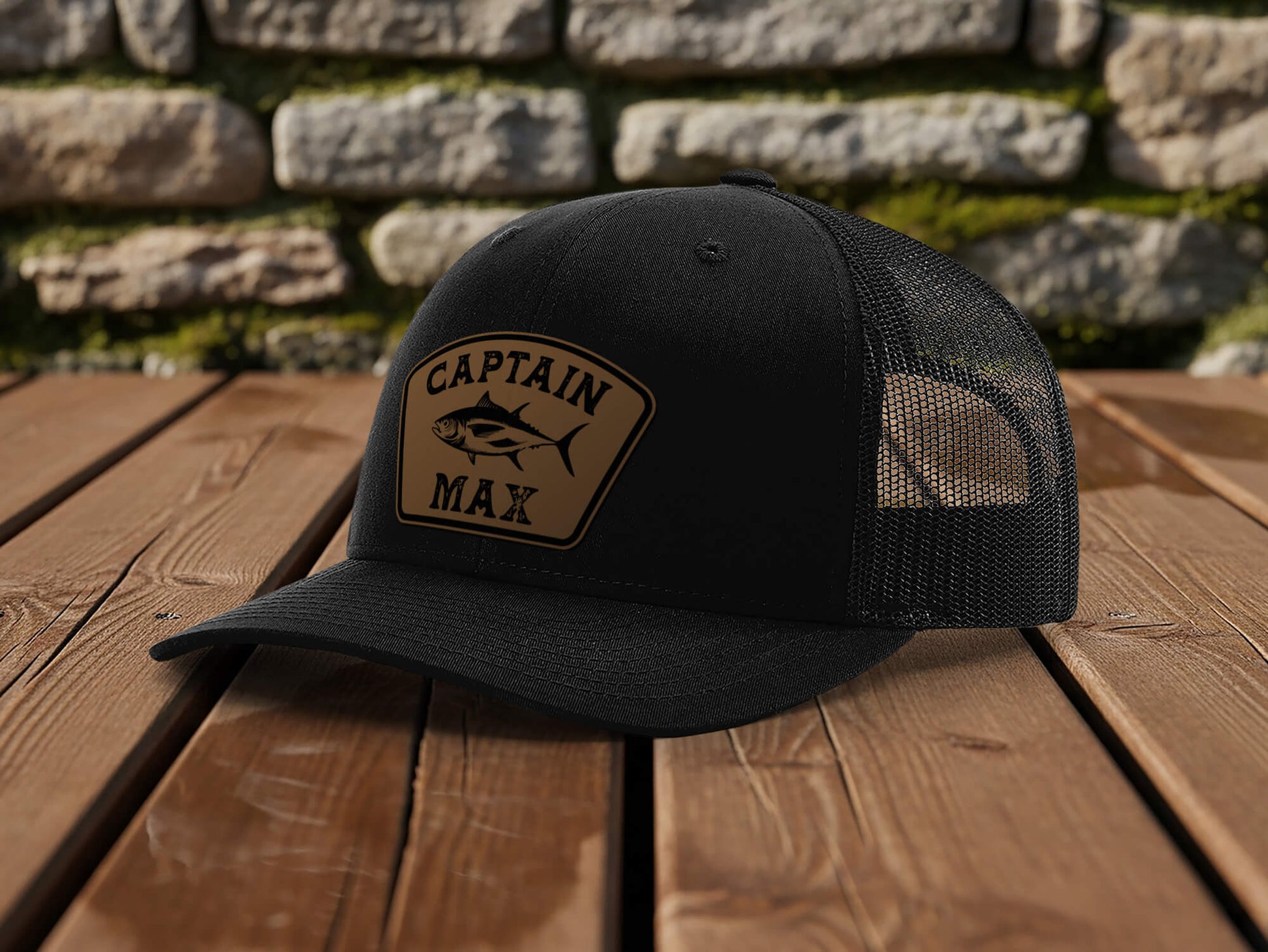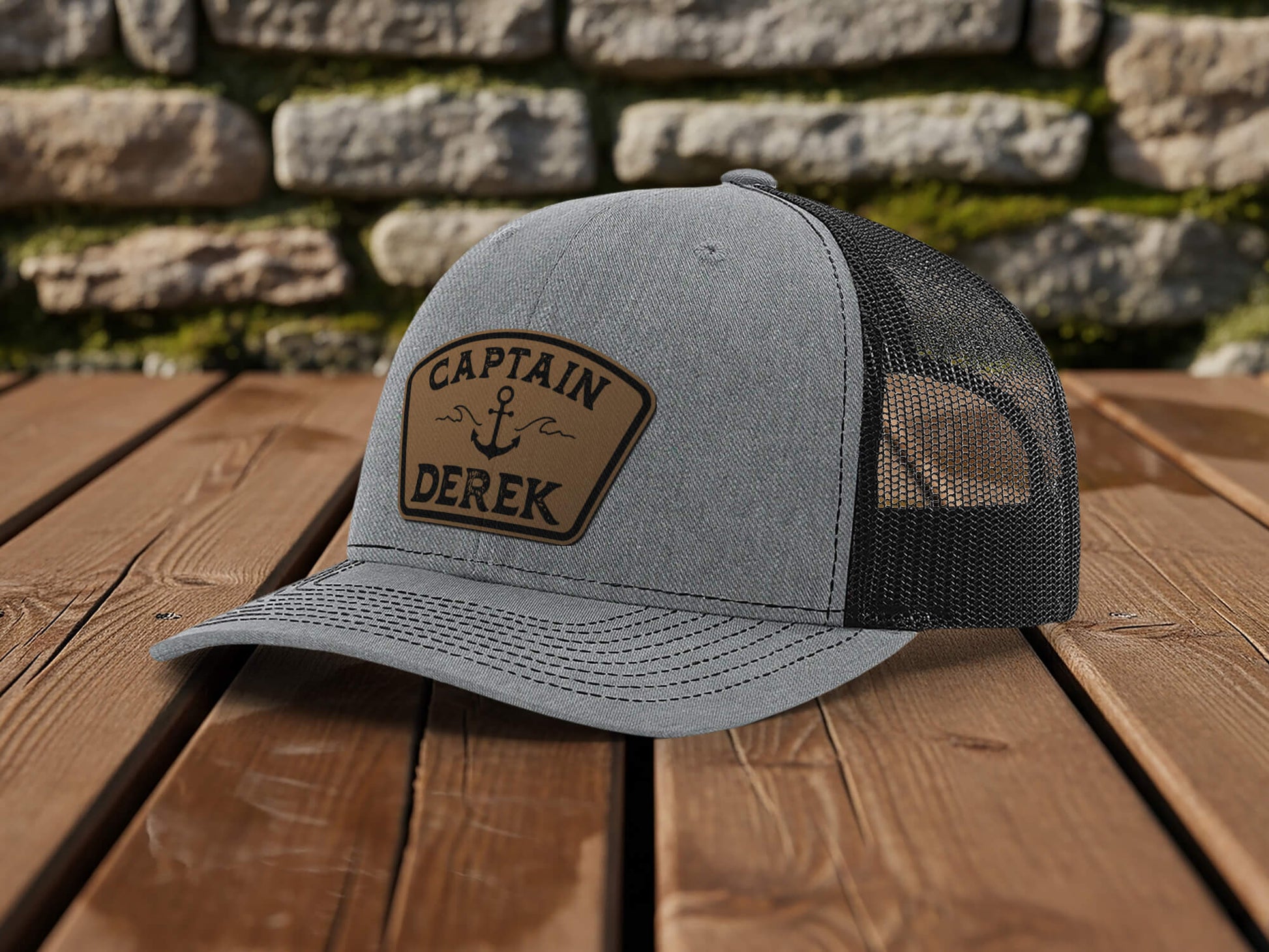 Set sail in style with this custom boat captain or first mate hat, featuring a premium engraved leather patch personalized with your name, boat name, or title. A perfect gift for boat owners, lake lovers, or nautical enthusiasts who want to stand out on the water!