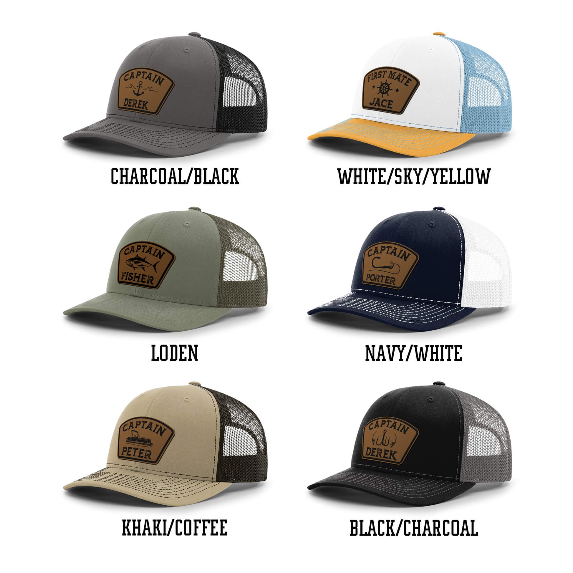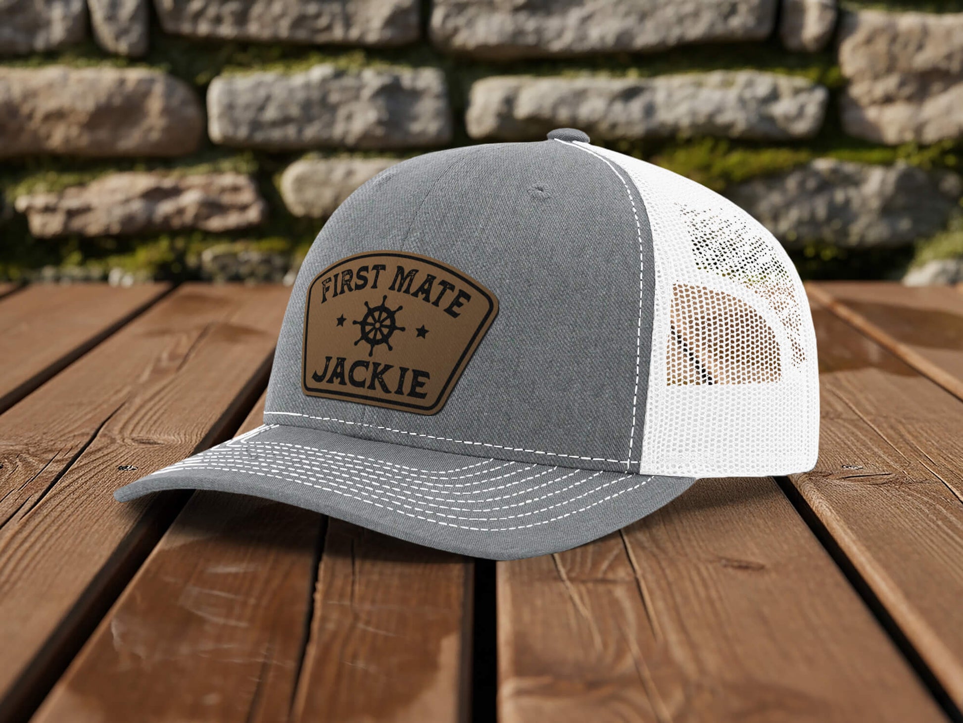 Custom Captain Hat with Engraved Leather Patch – Personalized First Mate Boating Hat Gift