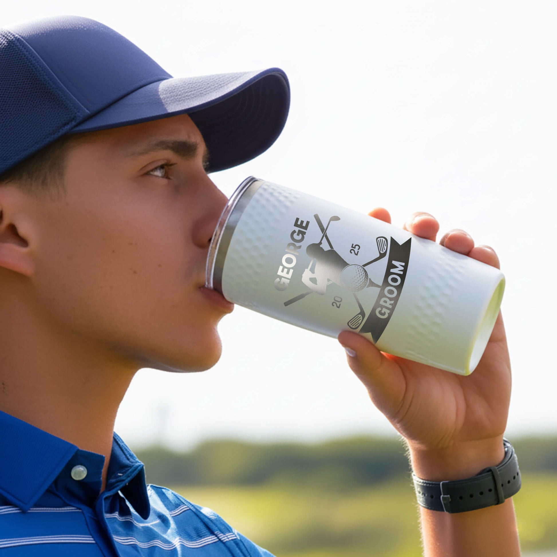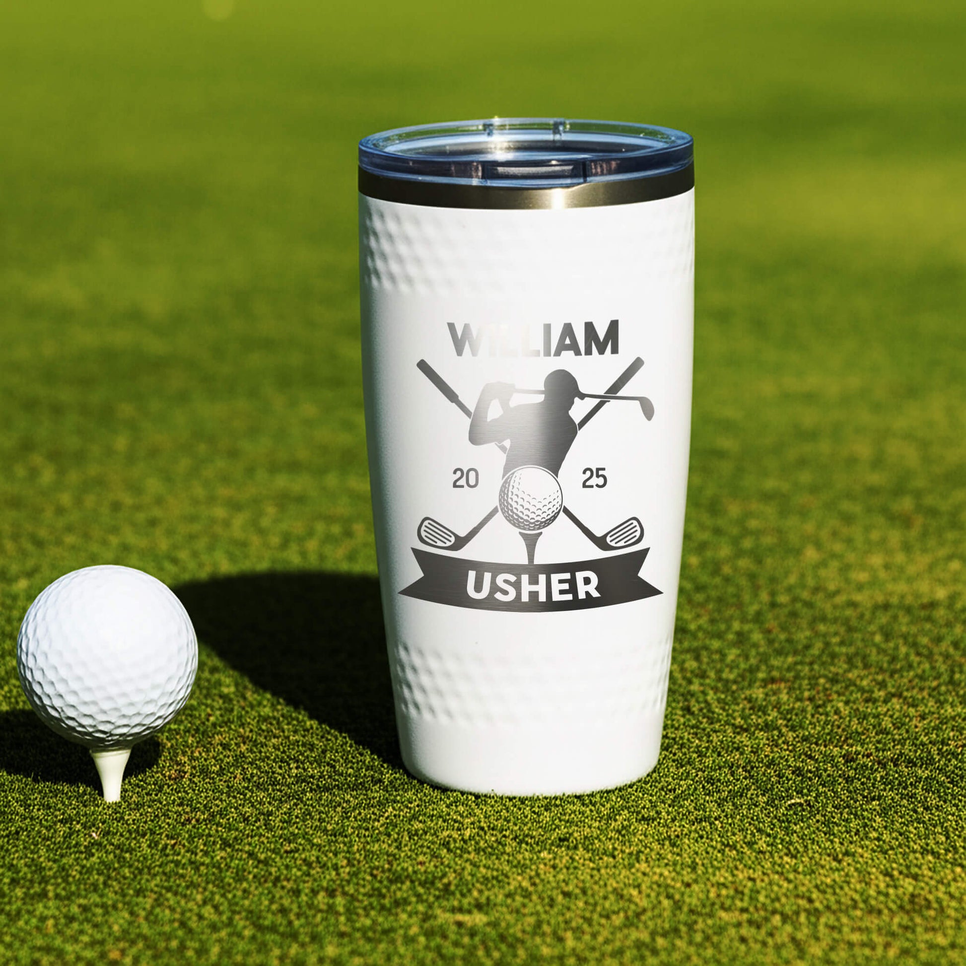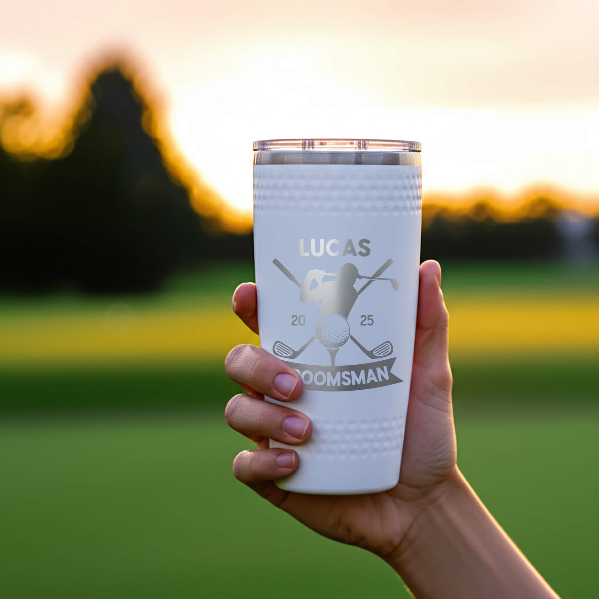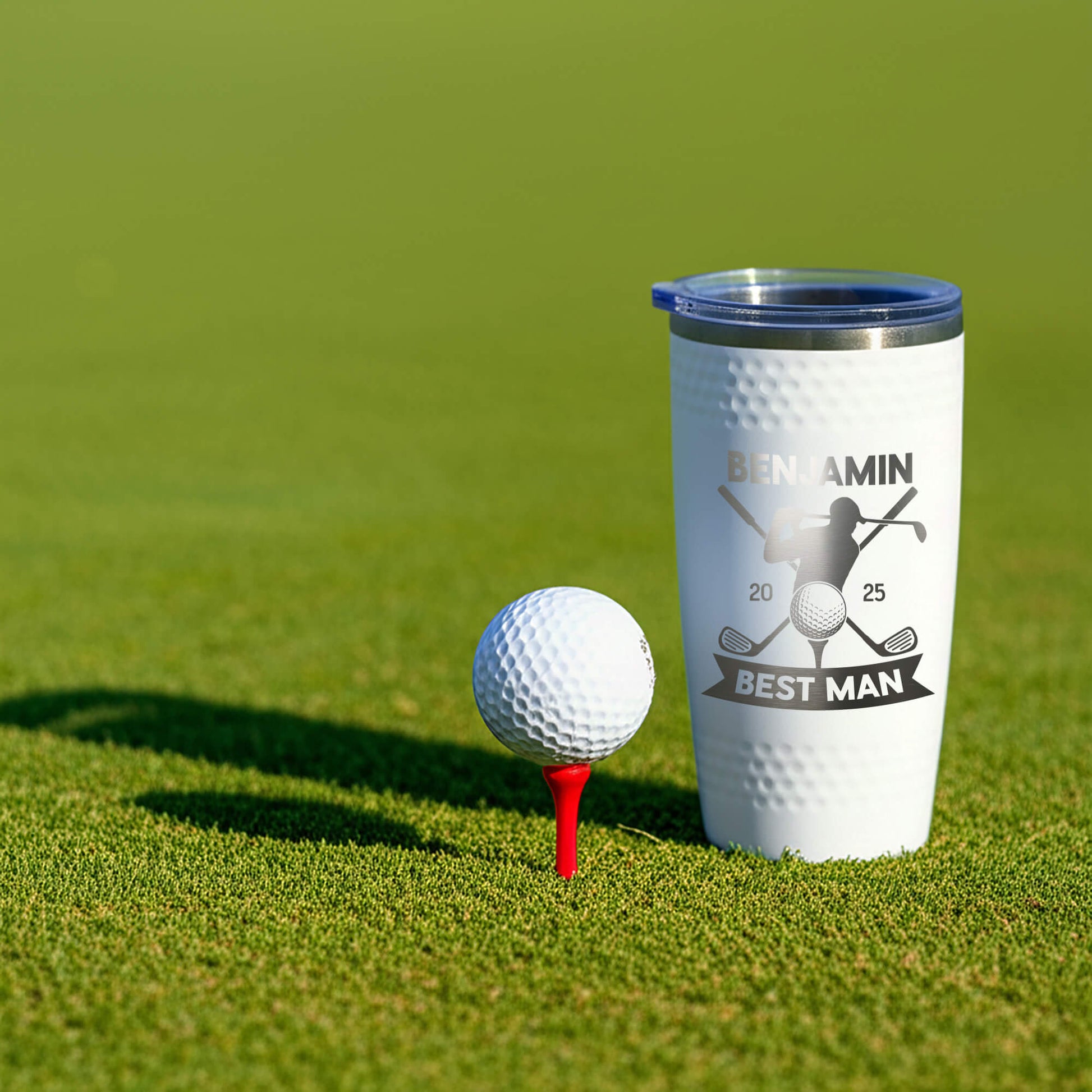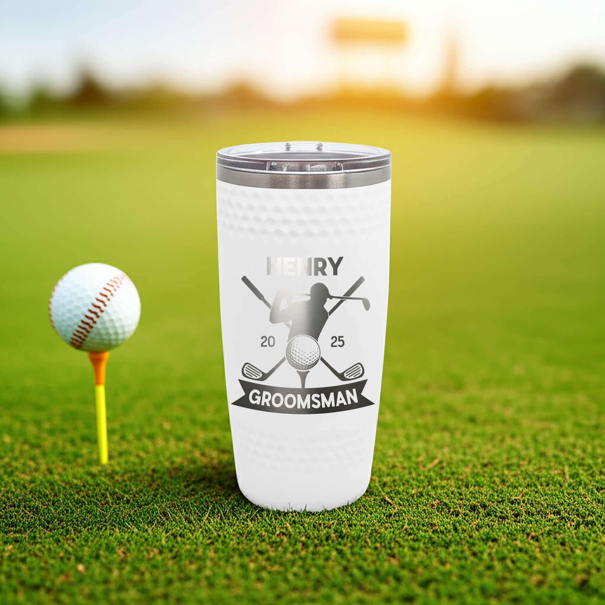 Elevate your groomsmen gifts with our custom engraved golf tumblers – the perfect blend of style and function for the golf enthusiast. Each tumbler is laser-engraved with your choice of name, initials, or wedding role, making it a lasting keepsake for weddings, bachelor parties, or golf outings. Designed to keep drinks hot or cold for hours, this durable stainless steel golf tumbler is ideal for the course, clubhouse, or daily use. A thoughtful and practical gift for groomsmen, best man, fathers, or golf lovers that they’ll appreciate long after the wedding.
