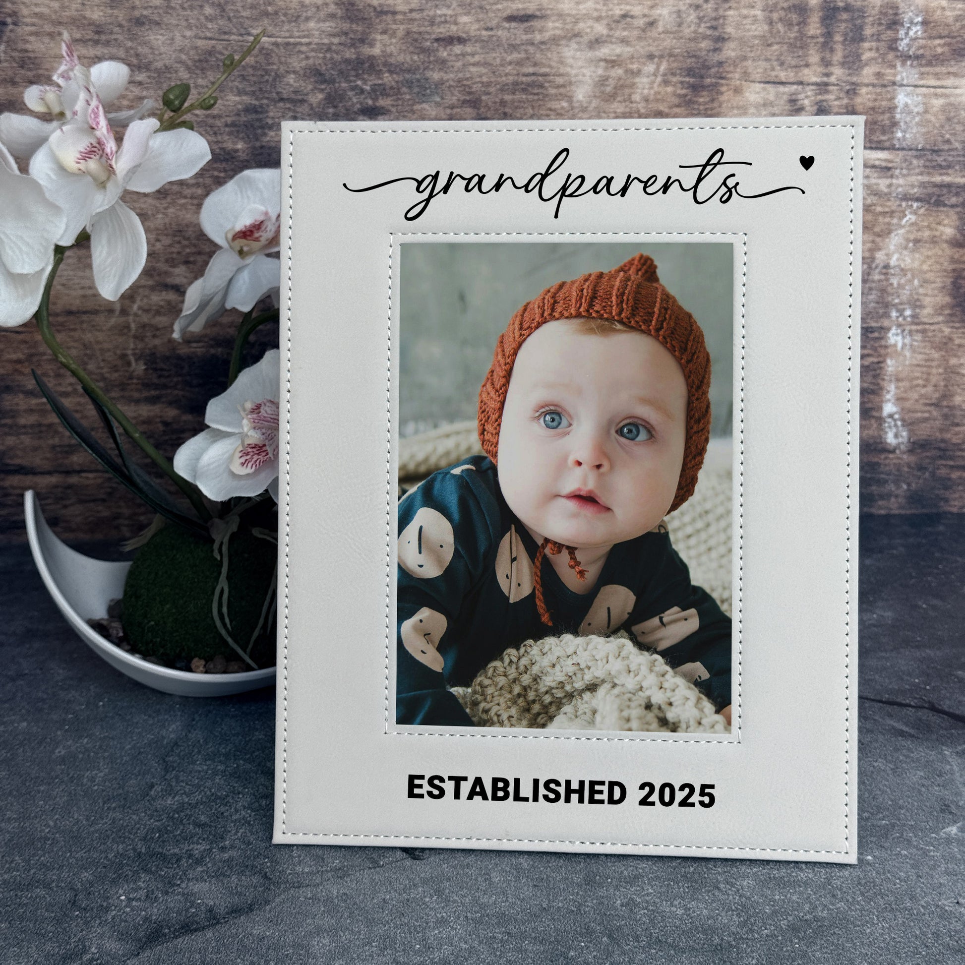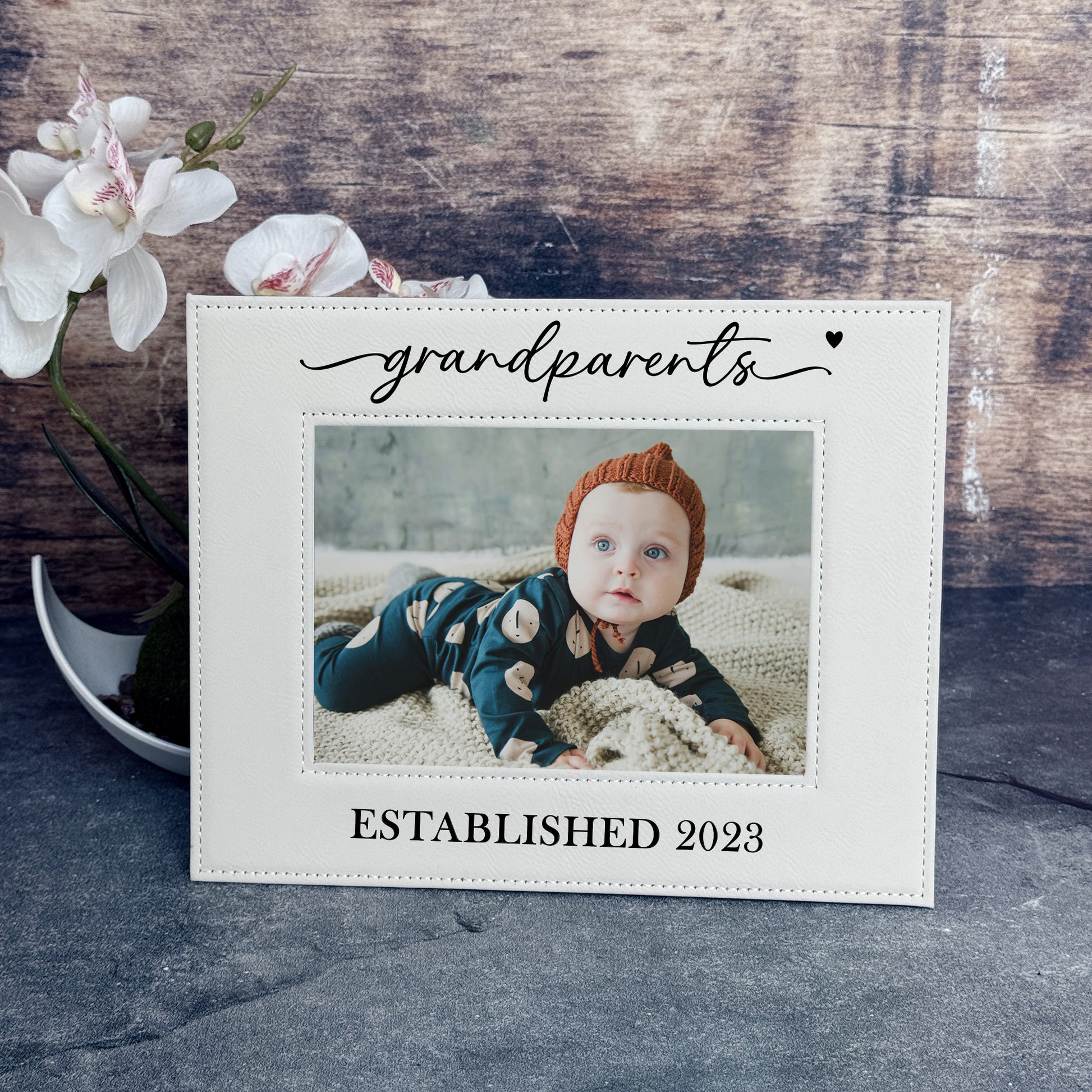 Celebrate the joy of becoming a grandparent with this beautifully engraved picture frame, designed to capture the magic of your family’s newest addition. Perfect for new grandparents, this frame can be personalized with the baby’s name or birth year, making it a unique keepsake they'll cherish forever. Ideal for a first grandchild announcement, add a sonogram photo for an extra special reveal that will warm their hearts. Thoughtful and timeless, this frame is the perfect way to say, “When a child is born, so are grandparents.” An unforgettable gift for any new grandma or grandparent!
