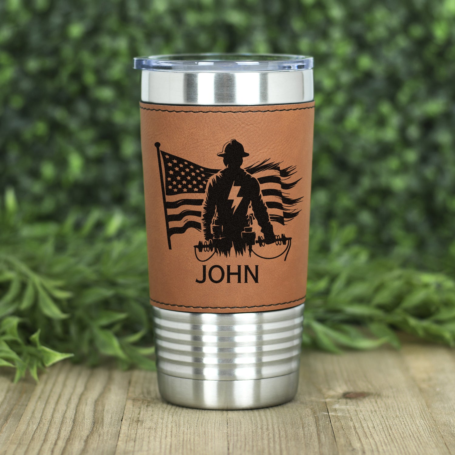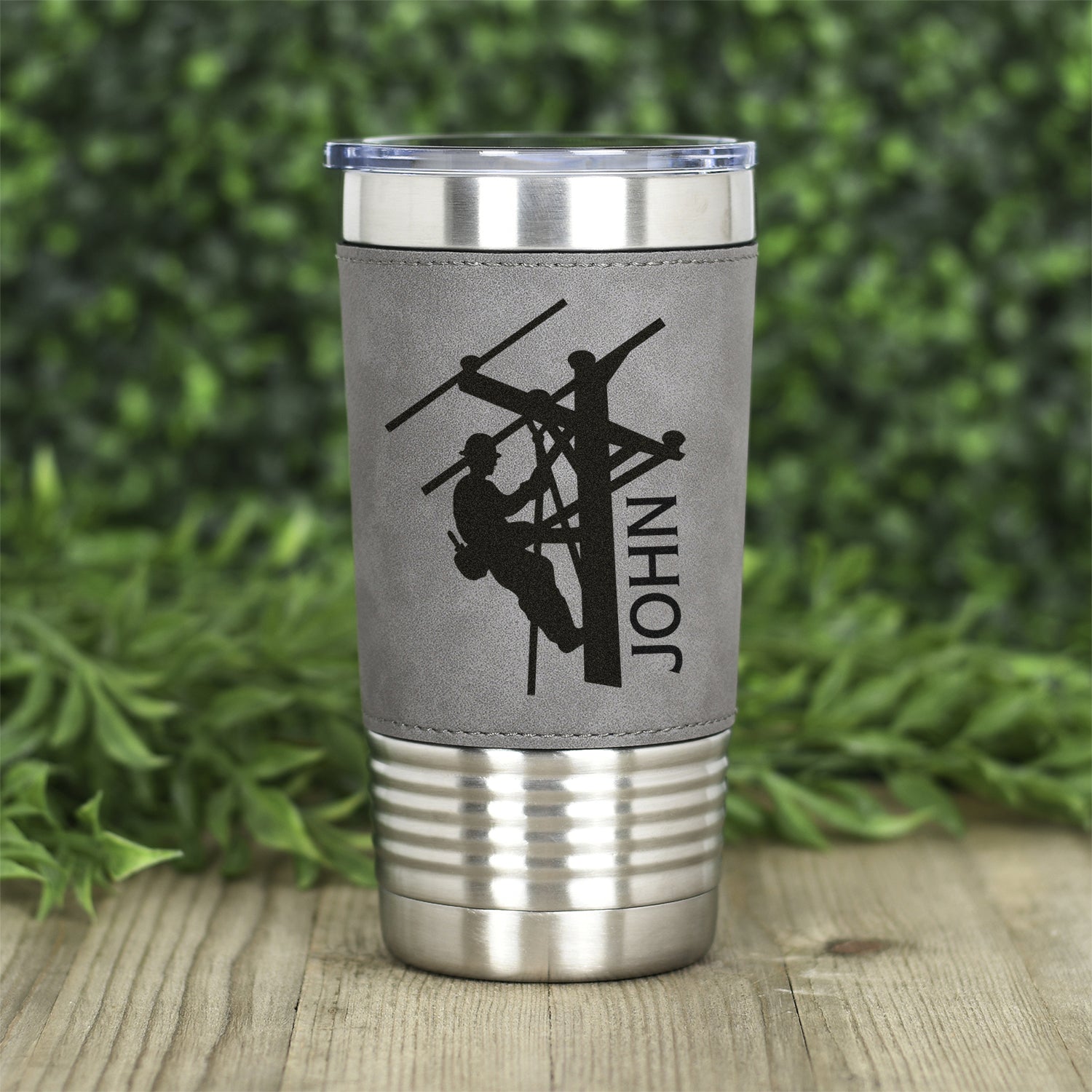 Personalized Leatherette Tumbler for Lineman Gift – Engraved with Name