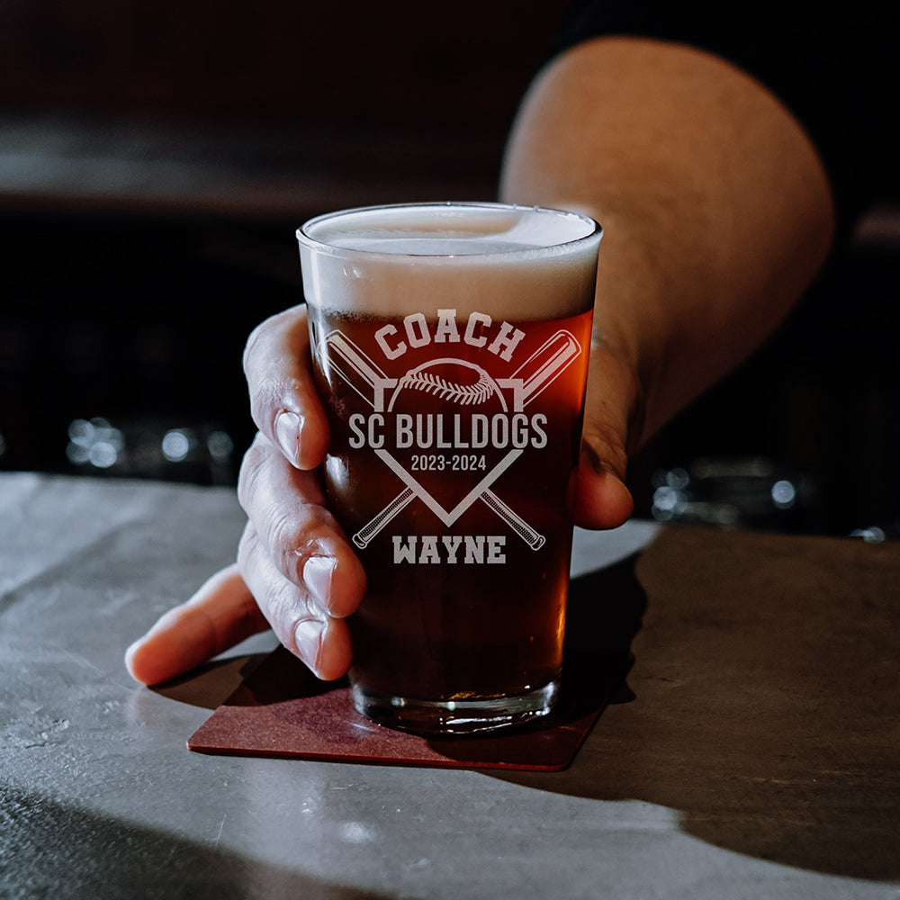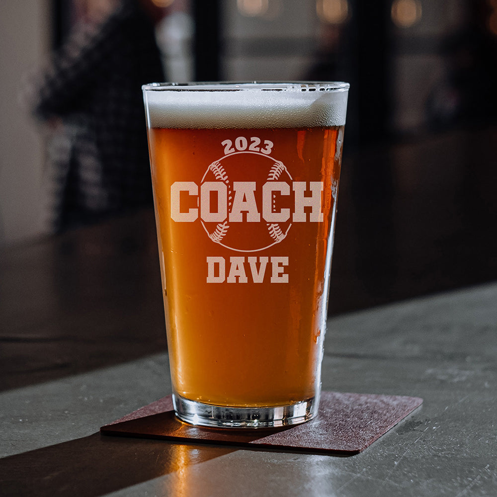 Perfect for enjoying a cold beer after a game or simply showcasing their dedication to the team, this personalized pint glass is the ultimate keepsake for any coach.