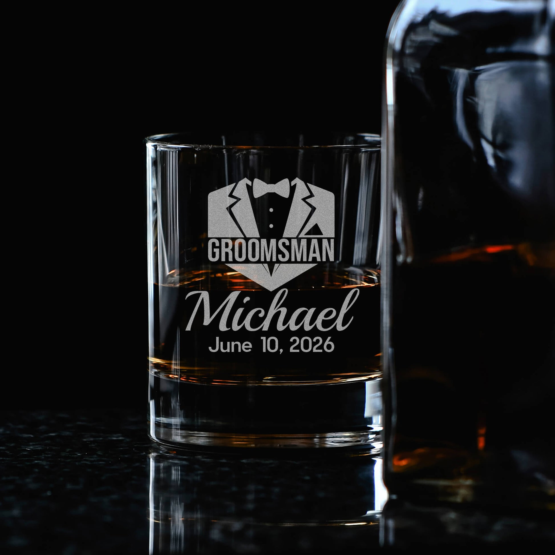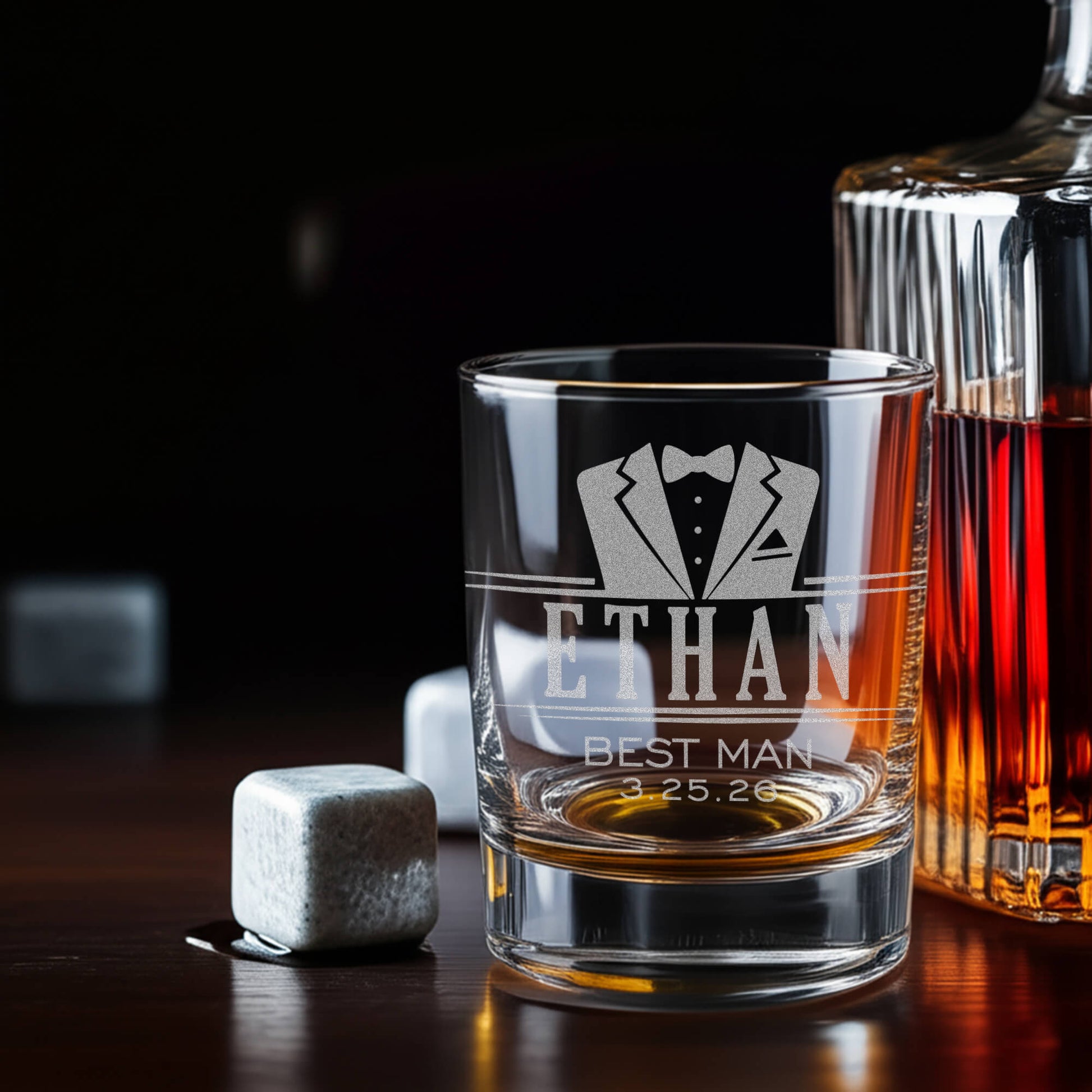 Personalized Whiskey Glass for Groomsmen – Custom Engraved Rocks Glass Gift for Best Man, Groom Squad Gift Idea, Wedding Party Favor